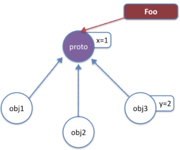obj.x = 1; //通过这种方式构造对象,对象的原型会指向构造函数的prototype属性,也就是foo.prototype