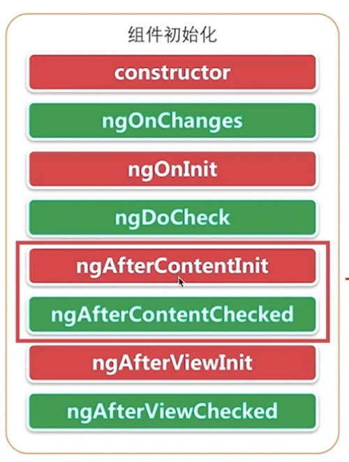 ngaftercontentinit,ngaftercontentchecked和ngafterviewinit,ngafterviewchecked类似。