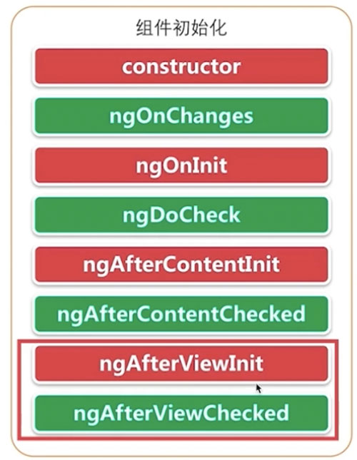 ngafterviewinit,ngafteviewchecked是在整个组件的视图全部组装完成后调用的。