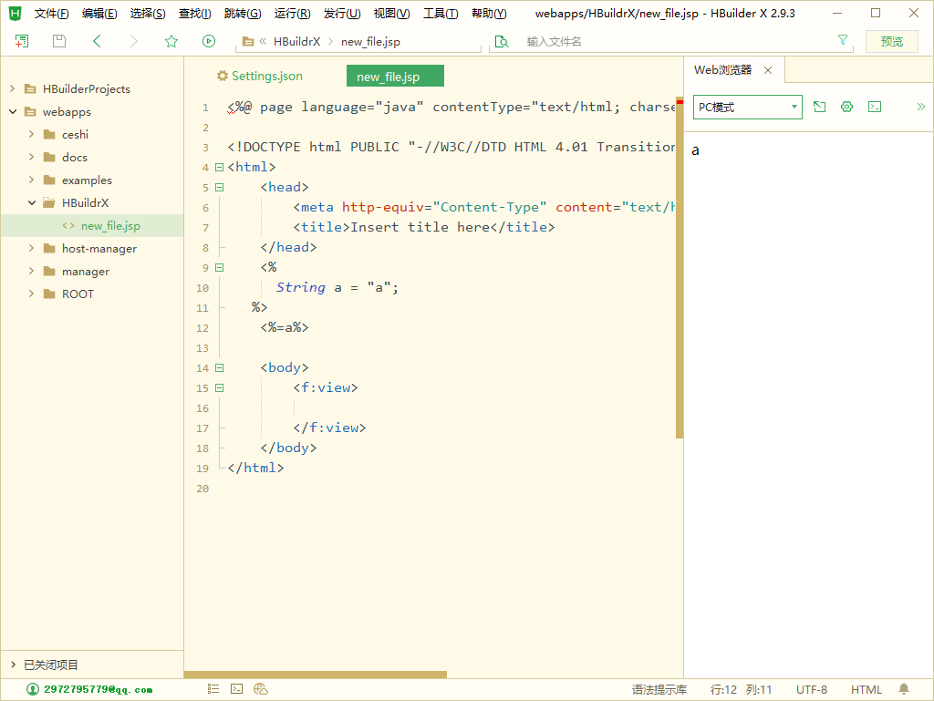 二、第二种方法,运行项目后查看,可同时运行项目,用hbuilderx查看jsp
