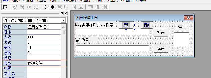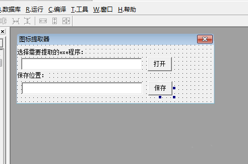 1、我们先做好图标提取器的界面,添加两个按钮,两个编辑框,适当更改一下窗口的标题和标签说明