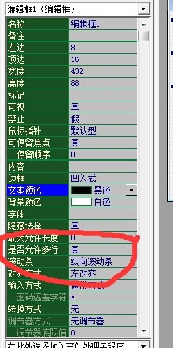 2、把是否允许多行选择 真 滚动条选择 纵向滚动条 这样文本过长可以拉动滚动条查看