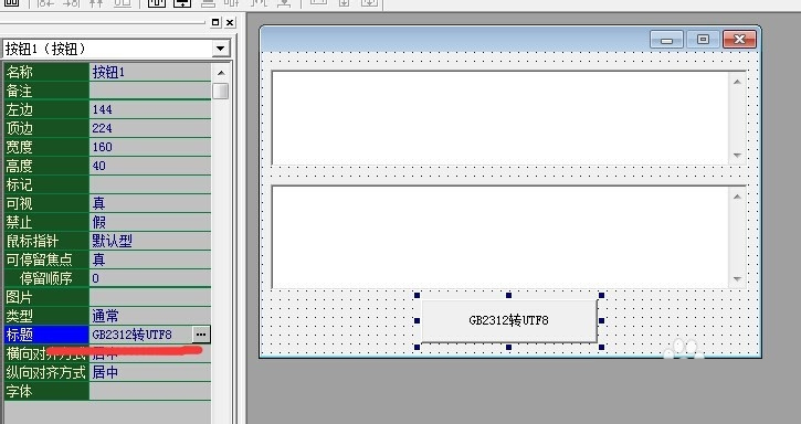 5、双击 GB2312转UTF8按钮 进入代码编辑模式 写出代码