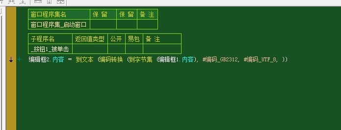 编辑框2.内容 = 到文本 (编码转换 (到字节集 (编辑框1.内容), #编码_GB2312, #编码_UTF_8, ))