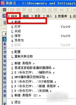 2、选择工具栏中的“F 程序”,然后在弹出列表中选择“N 新建”。