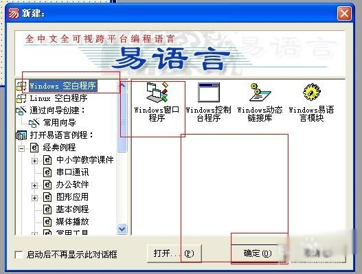 3、第二步搞定后,在弹出的标题为“新建:”的窗口中鼠标左键单击“Windows窗口程序”,然后鼠标左键单击标题为“确定(o)”的按钮。