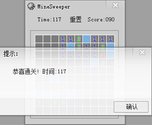 信息框_Ex (取窗口句柄 (), “恭喜通关! 时间:” + 到文本 (Time), , , , , , , , , , 真, , #银白, 120, 0, , , 假, , 7, 2)