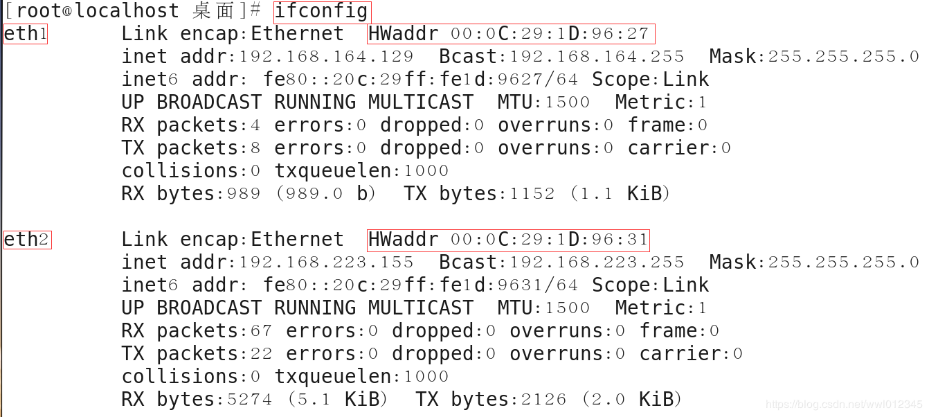 (1):由于配置了两个网路适配器,因此会出现一个eth1和一个eth2