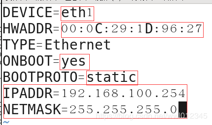 将设备改为eth1,硬件地址通过ifconfig查询,将eth1的硬件地址写道第二行,最后手动添加IP和网关。