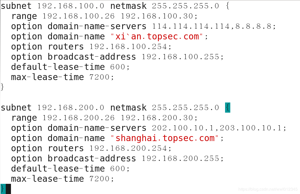 打开 dhcp/dhcpd.conf文件,内容如下: