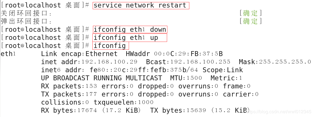 最后回到客户机,先 service network restart(重启网络服务)-->ifconfig eth1 down(禁用eth1网卡)-->ifconfig eth1 up(启用eth1网卡)-->ifconfig(查看IP)
