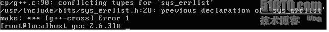 由错误报告可知,这是由于sys_errlist的定义不一致造成的,打开cccp.c文件发现其194行附近有如下代码,第194行为extern char *sys_errlist[]。显然要消除冲突,只需改变宏编译的分支方向,使其不走这一分支即可。尝试在这段代码前面如175行加上#define bsd4_4,修改后再次make,该错误改正,遇到下一个错误。