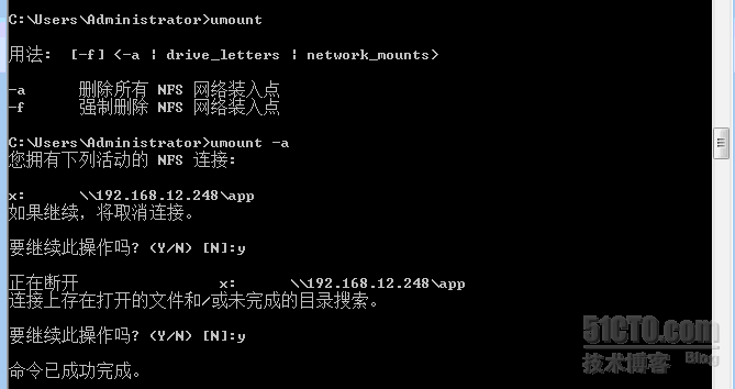 如果要去掉nfs共享,只需只需卸载命令即可,umount用法如下: