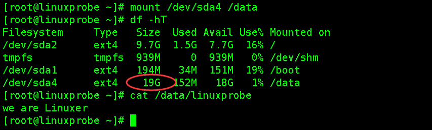 [root@linuxprobe data]# echo "we are Linuxer" > linuxprobe