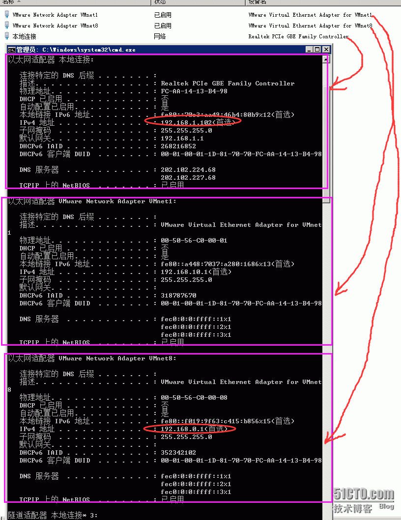VMware下的NAT方式联网通过vm虚拟网卡8来实现。正常化的配置给个图如下: