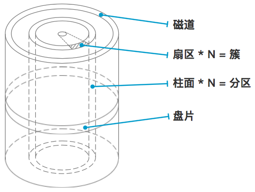 所有盘面上的同一磁道构成一个圆柱,称为柱面,柱面是系统分区的最小单位