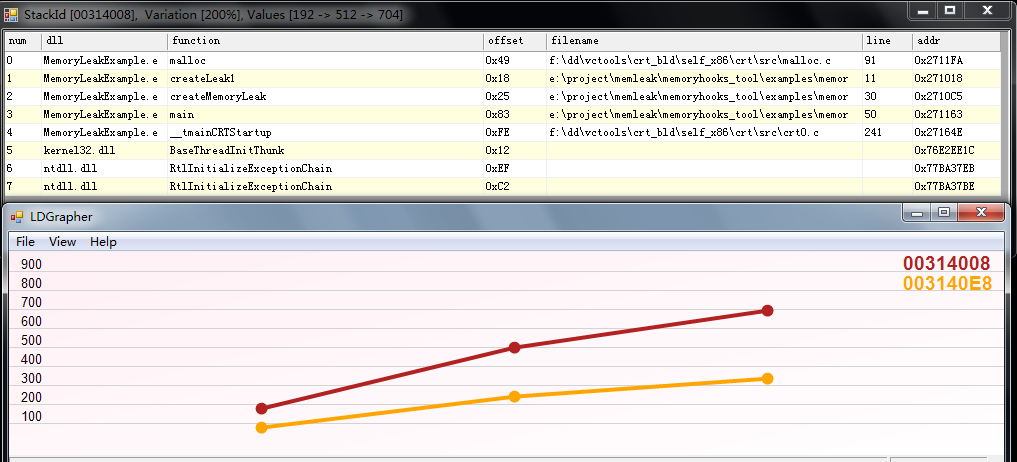 微软出品的内存泄漏分析工具,原理同hookapi方式。配合LDGraph可视化展示内存分配数据,更方便查找泄漏。