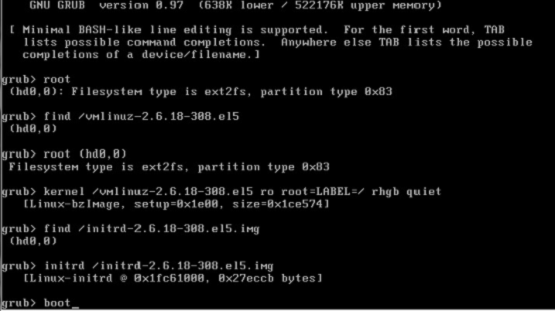 可以把这个文件备份到其他地方,这样启动后可以把文件恢复回去, 运行root或find /vmlinuz-2.6.18-53el5(可以使用TAB补全),可以搜索vmlinuz所在分区