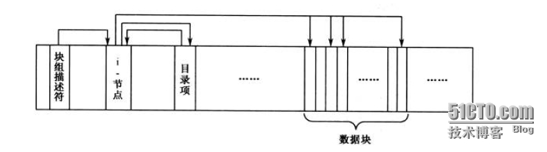 综合上述,EXT3文件系统可以用一副图来描述其内部结构。如下图: