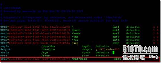 7、 设置开机挂载,修改配置文件vim /etc/fstab