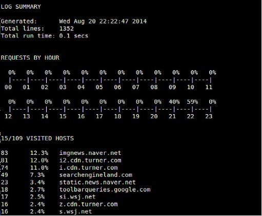 在使用这些脚本之前,先使用“-o”选项运行httpry一段时间。一旦你获得了输出文件,使用下面这个命令,运行一次脚本: