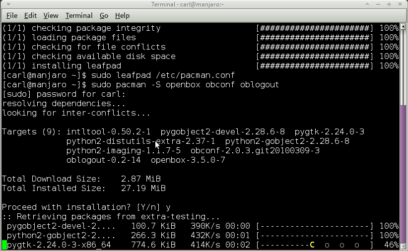 图片来自: Wikipedia Atari 有一项反对作者将自己的名字放进他们的游戏里的政策,所以这个无畏的程序员只能偷偷的把自己的名字放进游戏里。Atari 在 Warren Robinett 离开公司之后才发现这个“密室”。Atari 并没有对此感到生气,而是给这类“秘密功能”起了个名字——“彩蛋”,因为——你懂的——你会寻找它们。Atari 还宣布将在之后的游戏中加入更多的“彩蛋”。 这种软件里的“隐藏功能”并不是第一次出现(这类特性的首次出现是在1966年PDP-10的操作系统上),但这是它第一次有了名字,同时也是第一次真正的被众多电脑用户和游戏玩家所注意。 Linux(以及和Linux相关的软件)也没有被遗忘。这些年来,人们为这个倍受喜爱的操作系统创作了很多非常有趣的彩蛋。下面将介绍我个人最喜爱的彩蛋——以及如何找到它们。 你很快就会想到这些彩蛋大多需要通过终端才能体验到。这是故意的。因为终端比较酷。【我应该借此机机会提醒你一下,如果你想运行我所列出的应用,然而你却还没有安装它们,你是绝对无法运行成功的。你应该先安装好它们的。因为……毕竟只是计算机。】 Arch : 包管理器(pacman)里的吃豆人(Pac-Man)为了广大的 Arch Linux 粉丝,我们将以此开篇。你们可以将“pacman” (Arch 的包管理器)的进度条变成吃豆人吃豆的样子。别问我为什么这不是默认设置。