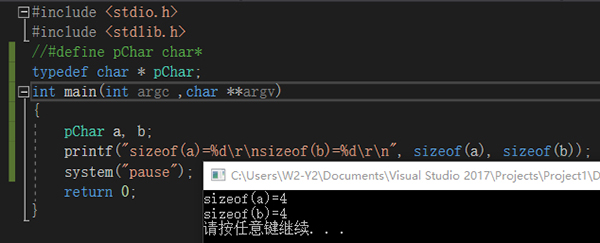 结果占用空间不一样,变量类型自然不一样,所以宏定义不是类型定义。那如果我换成typedef来定义类型呢?