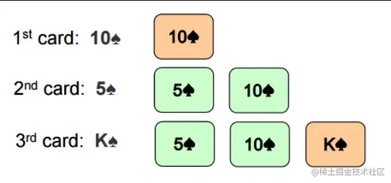 因此,对所有的牌重复这样的操作,所以每一次都是插入最正确的排序顺序,直到牌抓完为止。
