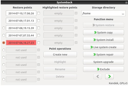 Systemback并不仅仅是另一个快照工具。它可以把你现在的系统转变为一张live CD或DVD,这样就可以直接在另一台电脑上启动了。它可以修复或重装GRUB 2启动器以及修复fstab文件,当然,Systemback的主要用途还是用于系统快照。