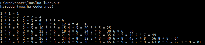 | 导读 | 我们使用 Lua 的 for 循环 实现打印乘法表的功能。 |