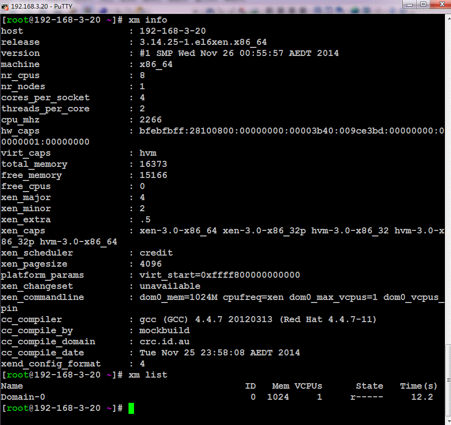 yum -y install xen ls -l /boot/xen.gz lrwxrwxrwx 1 root root 12 Dec 1 18:42 /boot/xen.gz -> xen-4.2.5.gz chkconfig xend on #配置xend服务开机自启动