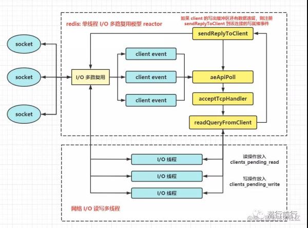 在 redis6.0 版本正式引入多线程去处理客户端的 I/O 读写响应,而 redis 命令事件的处理还是在主线程单线处理