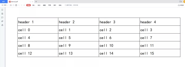 在项目中经常需要 PDF 文件中打印表格,这时就可以使用 Table 对象,创建一个个单元格并将表格内容写入单元格中。