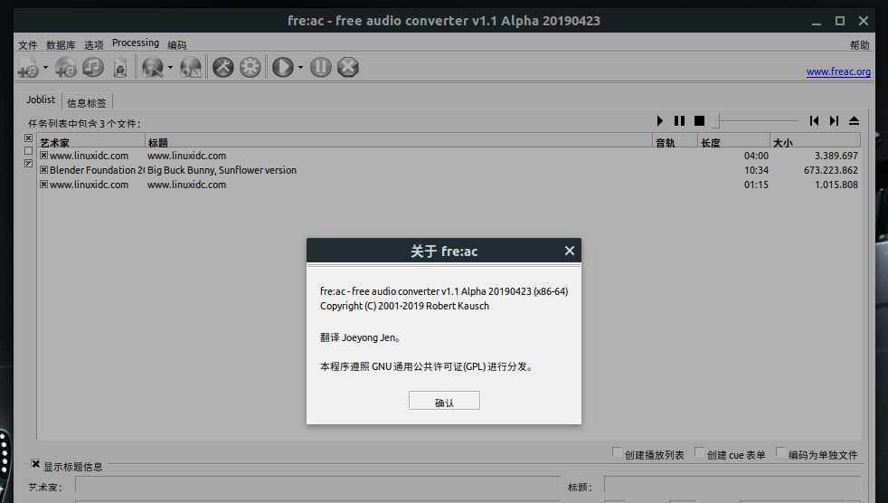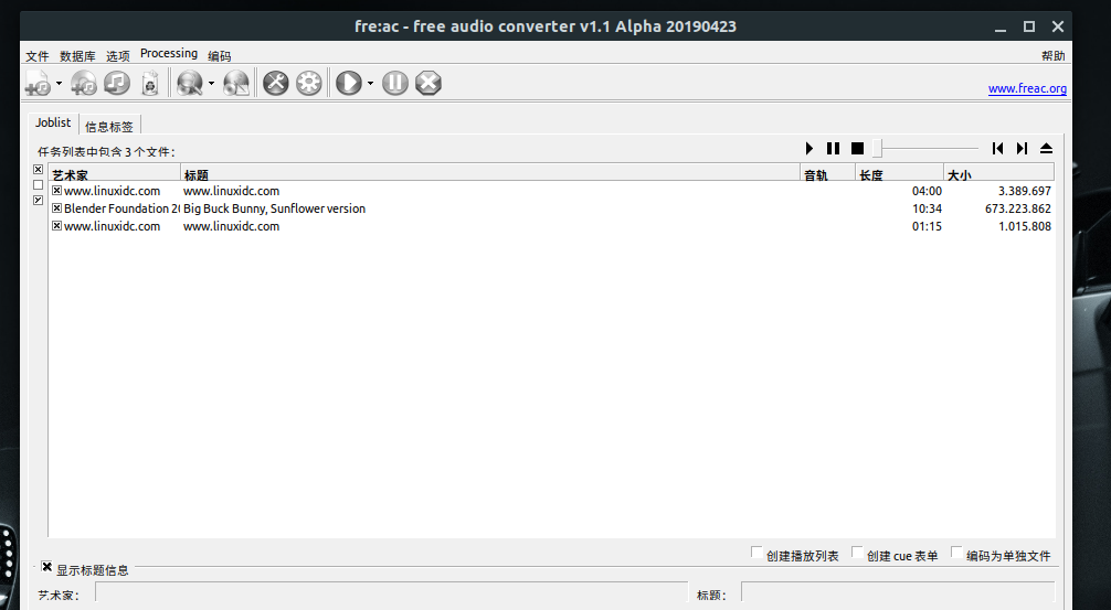在Ubuntu上安装fre:ac音频转换器: