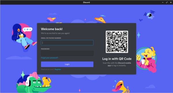 这就完成了!现在你可以从应用菜单中启动 Discord。你的登录页面将看起来像这样: