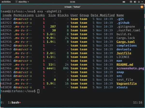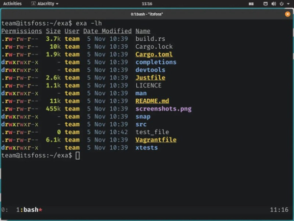 exa 不同格式化的“详细”输出也许会吸引 Linux/BSD 新手