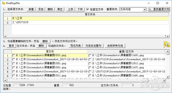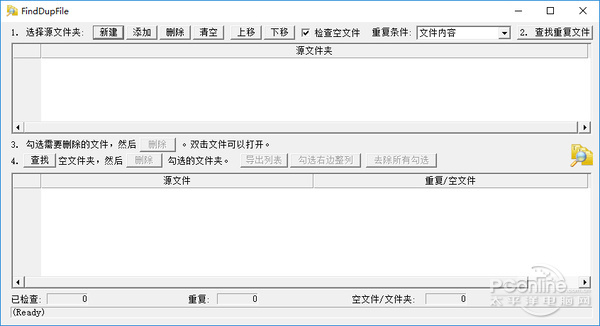 接下来出场的就是FindDupFile,这个就全中文操作界面。操作同样简单,在软件操作界面中就有着步骤指引。
