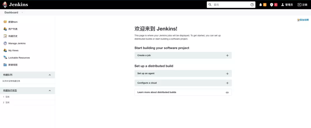 在浏览器中输入: ip:port即可,如 http://192.168.36.132:8080,获取管理员密码解锁Jenkins面板