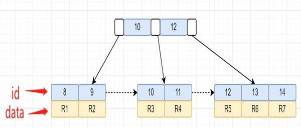 idx_city索引树,叶子节点存储的是主键id。还有一棵id主键聚族索引树,我们再画出聚族索引树图吧: