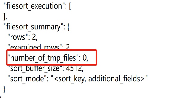 number_of_tmp_files 表示使用来排序的磁盘临时文件数。如果number_of_tmp_files>0,则表示使用了磁盘文件来进行排序。