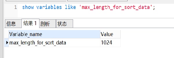 show variables like 'max_length_for_sort_data';