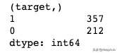 数据集确实是均匀分布的,尽管它不是非常不平衡:我们有357名**癌患者和212名健康患者。