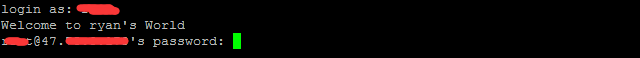 login as: xxxx Welcome to ryan's World xxxx@xxxx's password: