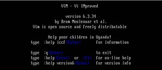 直接输入命令vi不指定文件名,由于这是一个没有命名的空文件,显示了vi的版本信息。
