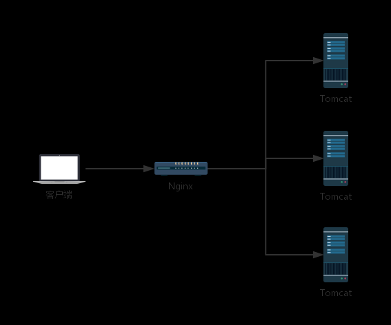 在这样的架构中 , Nginx 所代表的角色叫做负载均衡服务器或者反向代理服务器,所有请求首先到达 Nginx 上,再由 Nginx 根据提前配置好的转发规则,将客户端发来的请求转发到某一个 Tomcat 上去。
