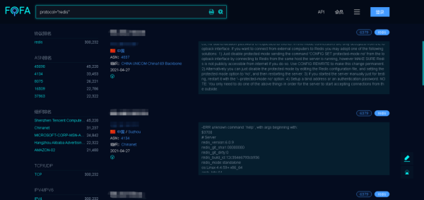 要防止被挖矿,首先要明白挖矿的本质。挖矿本质就是快速产出,利用可以利用的资源,实现快速产出,获取收益。为什么要明白这个道理,就是因为,挖矿的人,大多不会把时间花费在你的某台服务器上,大多做法是通过网络空间搜索引擎或端口扫描工具等,进行整个网段的批量扫描,根据扫描结果筛选出能够快速自动化拿到权限的机子,再去自动化跑脚本处理。比如我通过fofa直接搜索redis,就可以拿到开放了redis,并且可以直接登录的服务器的列表,那我肯定直接导出列表,针对这些ip去拿权限。