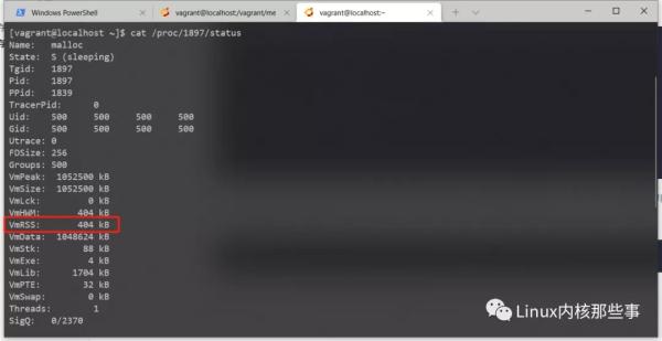 图2 中的 VmRSS 表示进程使用的物理内存大小,但我们明明申请了 1GB 的内存,为什么只显示使用 404KB 的内存呢?这里就涉及到 虚拟内存 和 物理内存 的概念了。