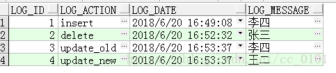 查询stu_log表的结果如下,第3条update语句没有触发该触发器,因为触发器指定只有修改stu_name字段才会触发触发器: