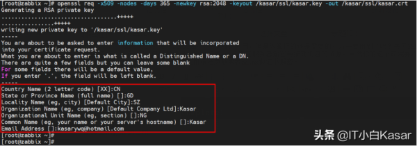 openssl req -x509 -nodes -days 365 -newkey rsa:2048 -keyout /kasar/ssl/kasar.key -out /kasar/ssl/kasar.crt