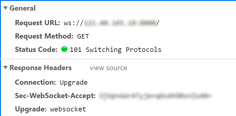 101 Switching Protocol,协议转换,在使用 Web Socket 的时候就会遇到,下面是一个示例,响应会有一个 Connection: Upgrade 的请求头,Upgrade 会指定要使用的协议名称